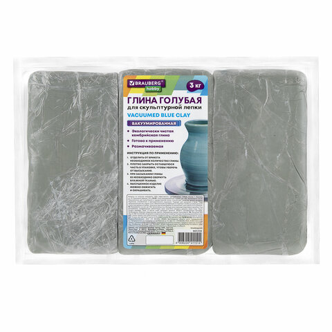 Безопасный и экологичный продукт, не вызывает аллергической реакции. Благодаря самозатвердевающему свойству глины изделия из нее сохнут самостоятельно без участия высоких температур. Для придания изделию стабильности рекомендуется обжиг. Глина представлена в голубом цвете, являющемся наиболее востребованным. Вес - 3 кг.