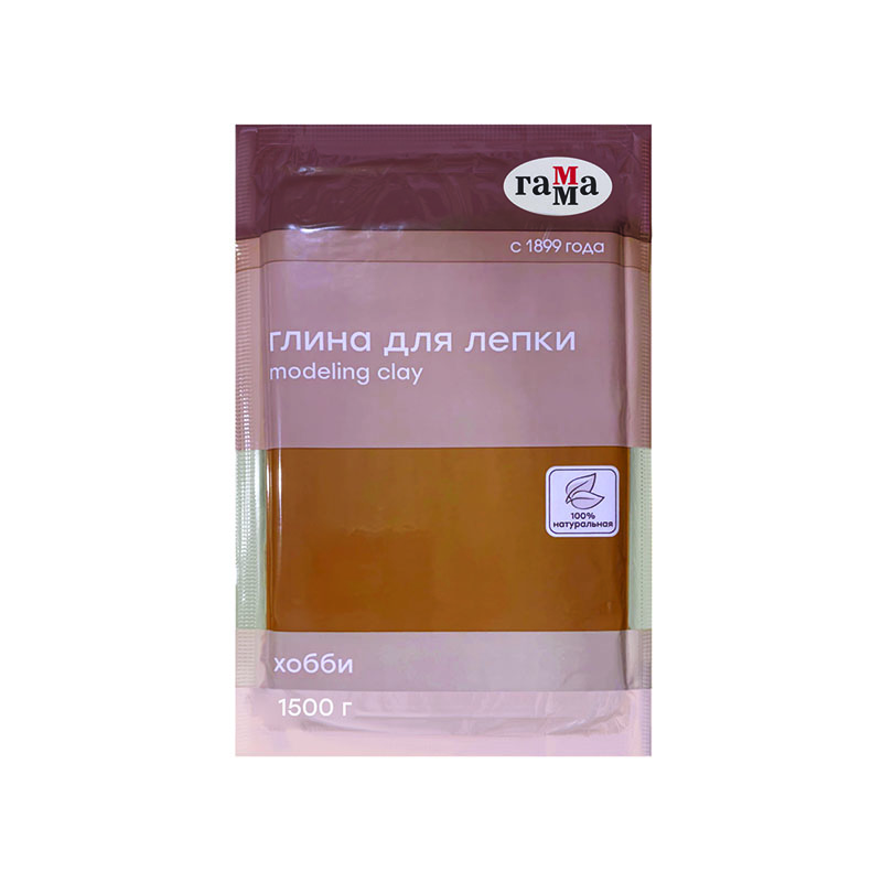 Глина для лепки Гамма "Хобби", натуральная, терракотовый, 1500г, вакуумная упак.