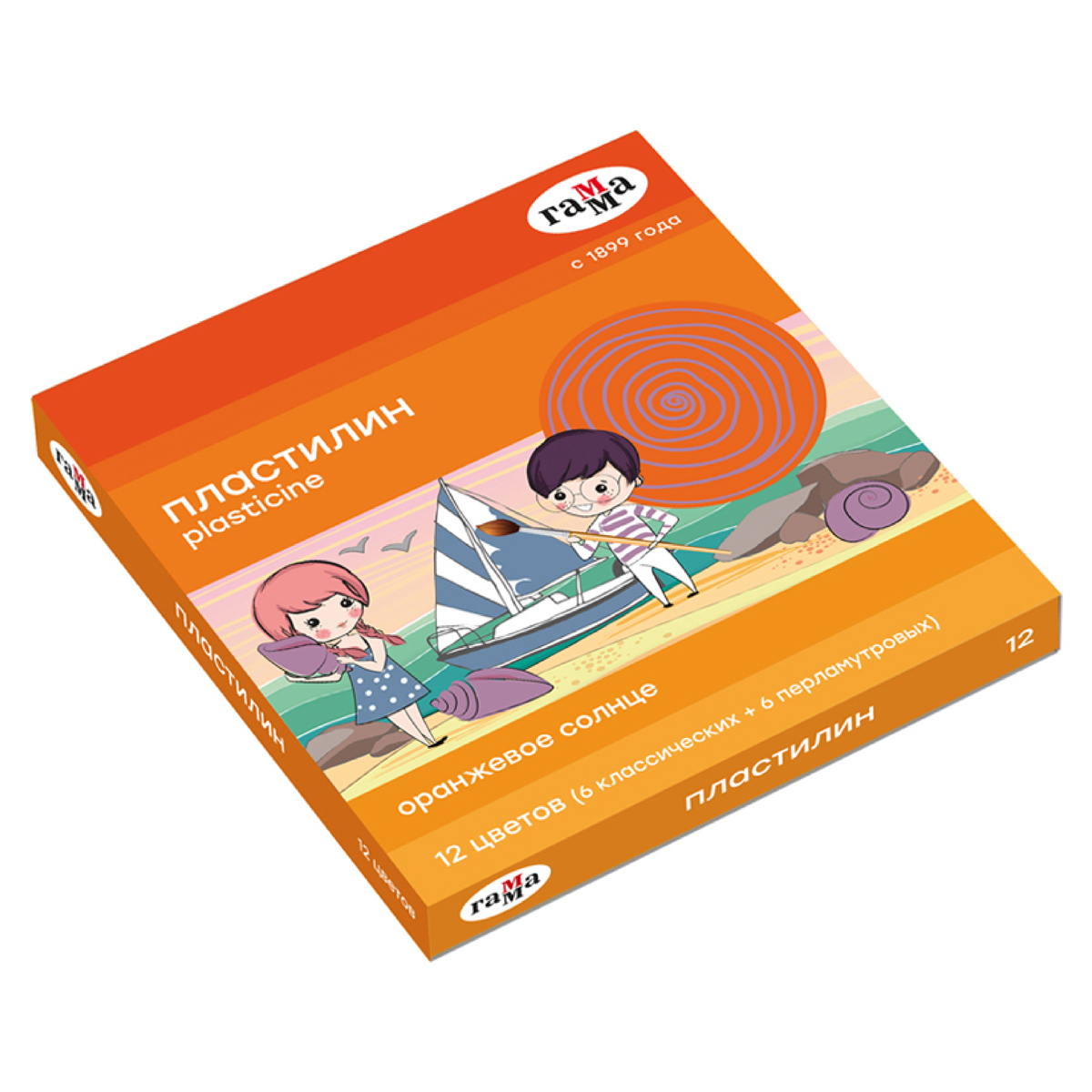 УЦЕНКА - Пластилин Гамма "Оранжевое солнце", 12 цветов (6 классич., 6 перл.), 156г, со стеком, картон. упаковка