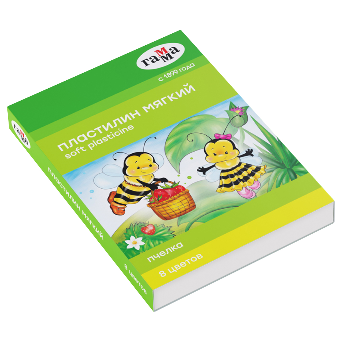 УЦЕНКА - Пластилин восковой мягкий Гамма "Пчелка", 08 цветов, 120г, со стеком, картон. упаковка