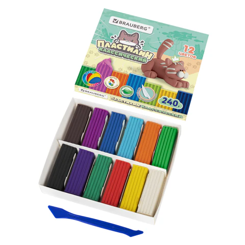 Классический пластилин BRAUBERG предназначен для лепки на уроках труда в школе, детском саду и дома. Творческие занятия с пластилином способствуют развитию мелкой моторики рук и образного мышления у детей.