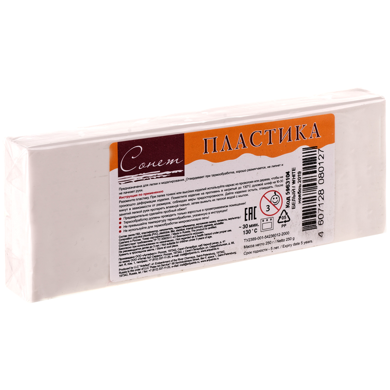 Пластика цветная Сонет, белый брус, 250г