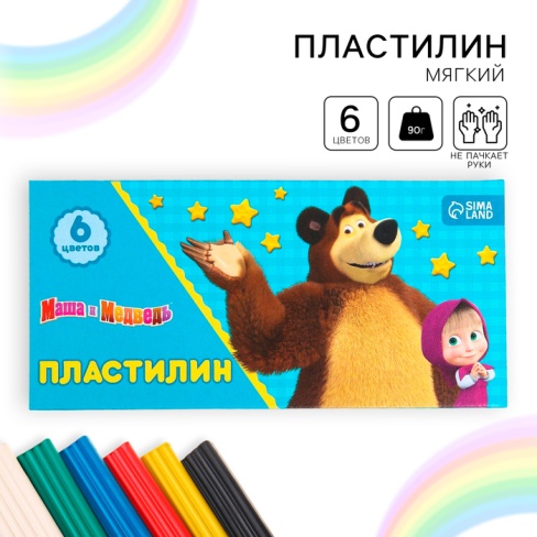 Пластилин Маша и Медведь, 6 цветов, 90 г