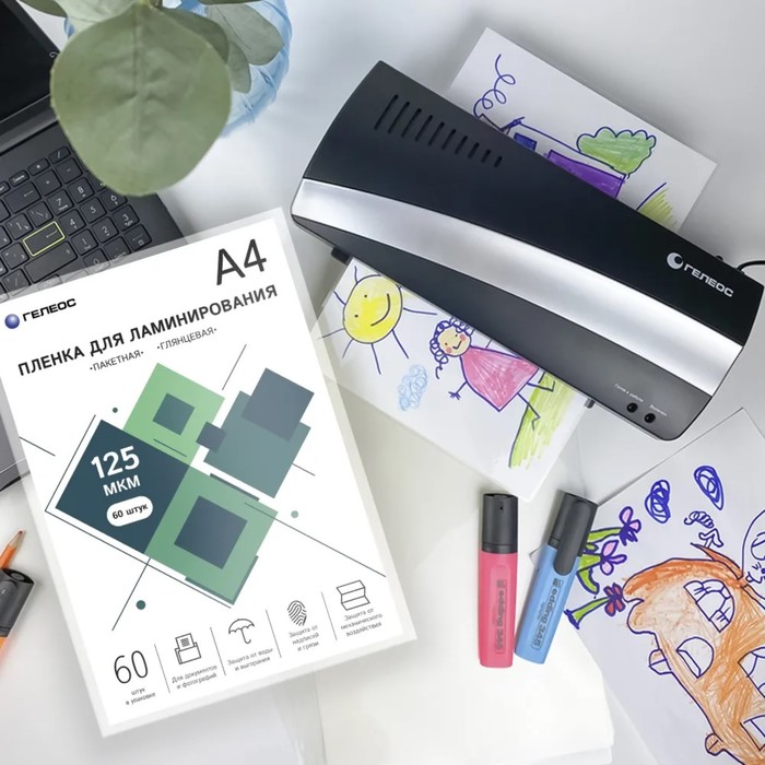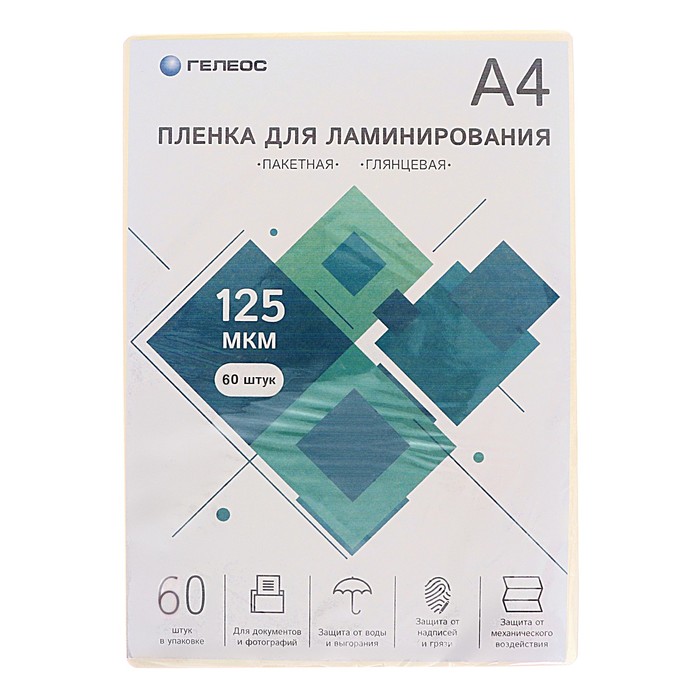 Пленка для ламинирования A5 154х216 мм, 60 мкм, 100 штук, глянцевые, Гелеос