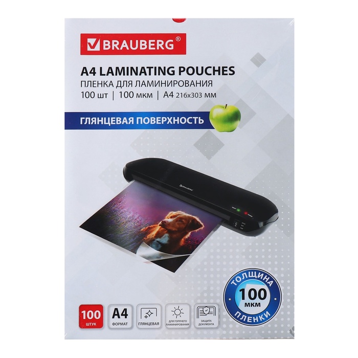 Пленка для ламинирования A4 216х303 мм, 175 мкм, 100 штук, глянцевые, Гелеос