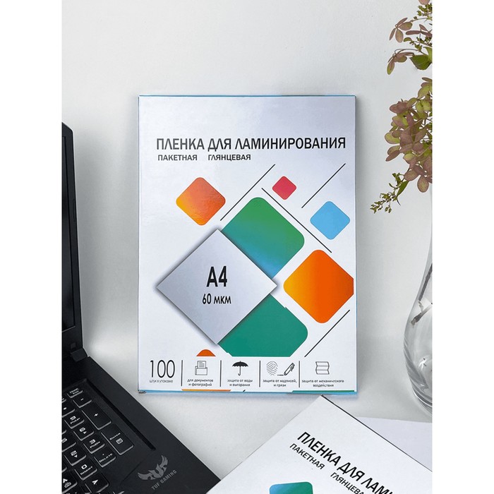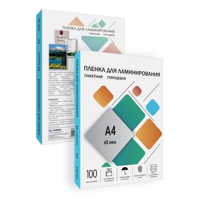Пленка для ламинирования A5 154х216 мм, 60 мкм, 100 штук, глянцевые, Гелеос