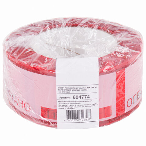 Пломбы самоклеящиеся номерные, КОМПЛЕКТ 1000 шт. (рулон), длина 66 мм, ширина 22 мм, КРАСНЫЕ
