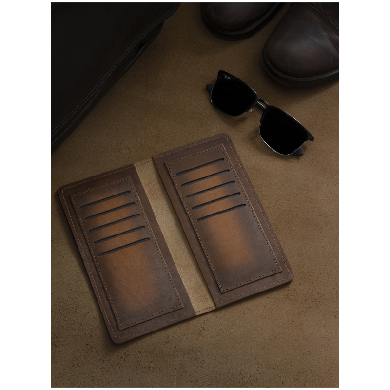 Удобный и стильный клатч из натуральной кожи в подарочной деревянной упаковке станет отличным подарком и подчеркнет ваш статус! Внутренние клапаны с вырубками под 5 карт каждая, наружный карман.