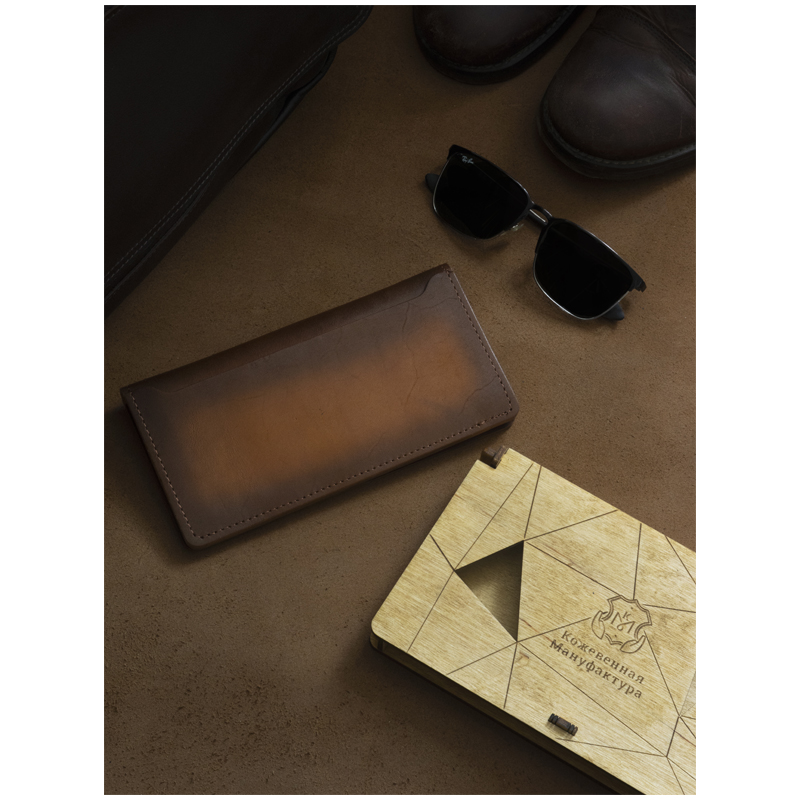 Клатч с хлястиком Кожевенная мануфактура, нат. кожа, светло-коричневый, в деревянной упаковке