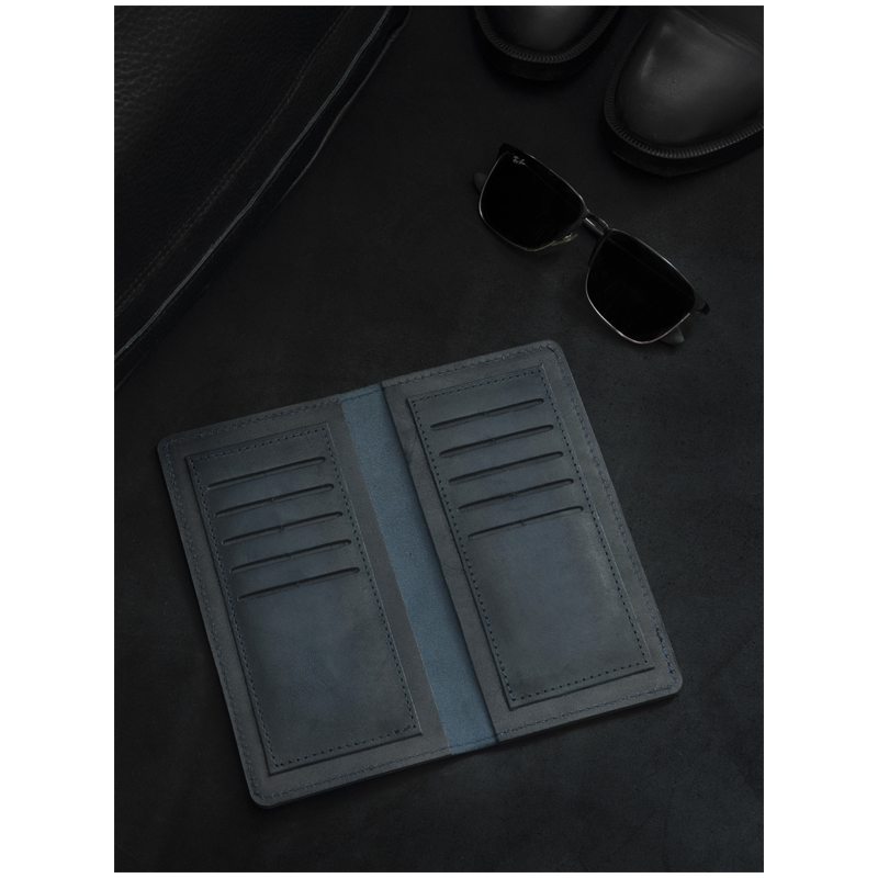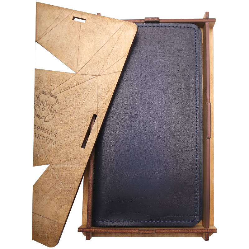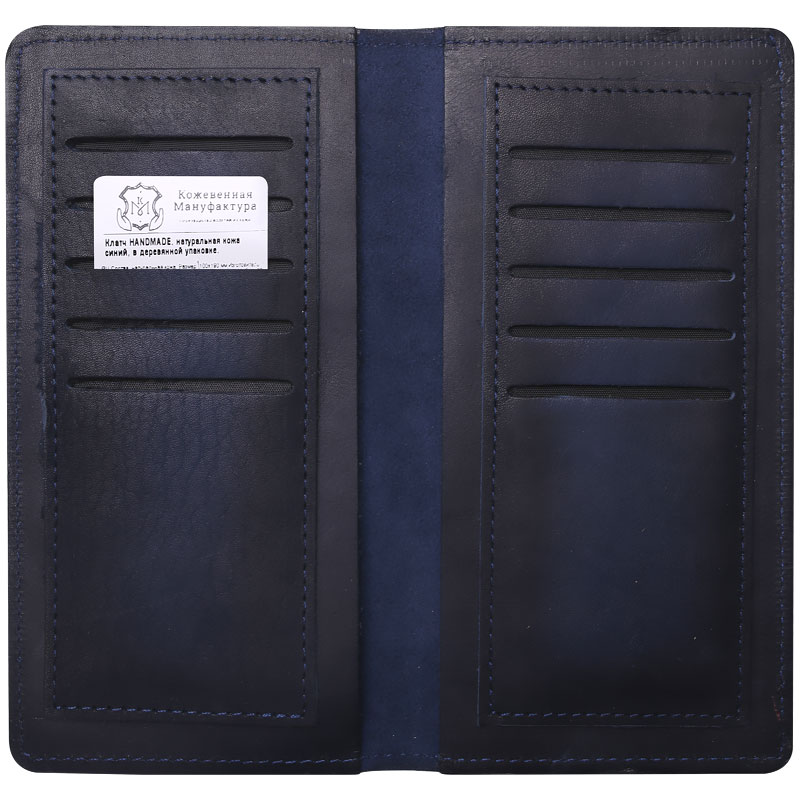 Портмоне с хлястиком Кожевенная мануфактура, нат. кожа, синий, в деревянной упаковке