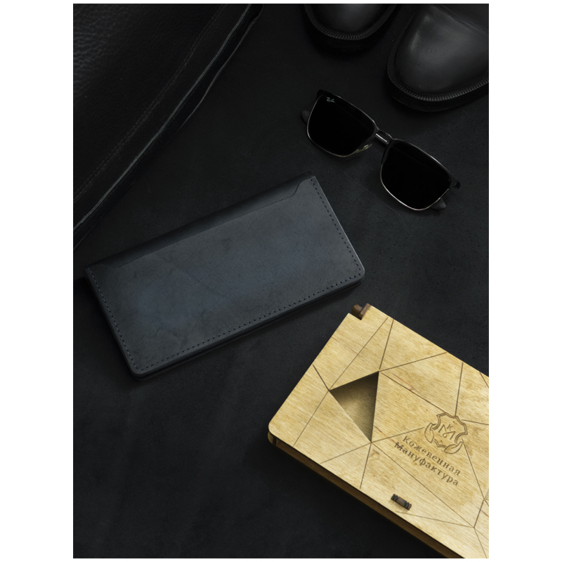 Портмоне с хлястиком Кожевенная мануфактура, нат. кожа, черный, в деревянной упаковке
