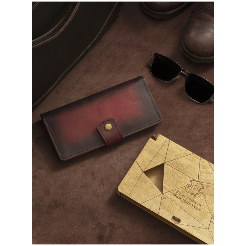 Портмоне с хлястиком Кожевенная мануфактура, нат. кожа, красный, в деревянной упаковке