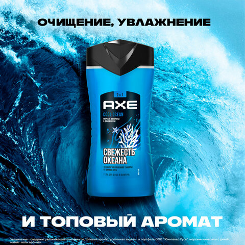 Топовый аромат акватический направленности стартует морскими минералами с аккордами дикой мяты – идеалити, чтобы быстро проснуться и получить заряд чистоты на весь день. Гель для душа и шампунь 2 в 1 AXE с технологией усиленной защиты* от запаха эффективно смывает бактерии, очищает и ухаживает за кожей и волосами пока ты в душе. В его составе пребиотики растительного происхождения** и увлажняющие ингредиенты. Не содержит парабены. Все, что нужно для чистой, увлажненной, ухоженной кожи и волос, к которым хочется прикоснуться.