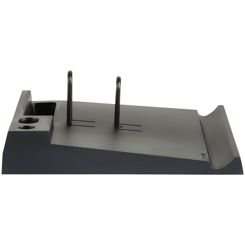Подставка под календарь СТАММ поможет создать порядок на рабочем столе и предназначена для крепления перекидного календаря. Её также можно использовать для хранения пишущих принадлежностей и канцелярских мелочей, так как изделие имеет специальные отделения для визиток или листочков для записи. Подставка выполнена из полистирола чёрного цвета и обладает матовой шагреневой поверхностью. Размер изделия: 40*220*204 мм.
