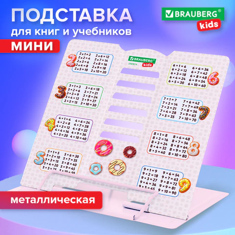 Подставка для книг и учебников BRAUBERG KIDS mini "Magic" с таблицей умножения, регулируемый угол наклона, металлическая, 238977