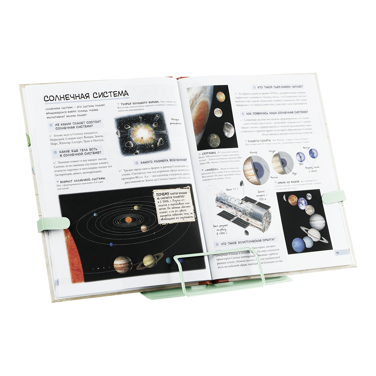 Подставка для книг СТАММ, металлическая, регулируемый угол наклона, с держателем, "Котики в космосе"