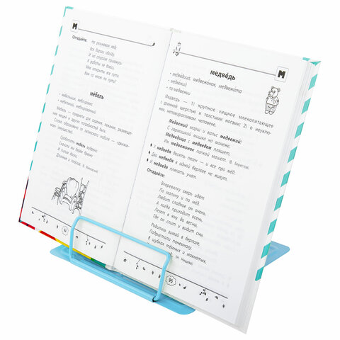 Подставка полностью выполнена из металла, поэтому отлично подойдет для надежной фиксации тяжелых и объемных учебных материалов и книг. Оригинальный дизайн понравится школьнику любого возраста. Регулируемый угол наклона обеспечивает удобство при работе с текстом, облегчает чтение и выполнение домашней работы.
