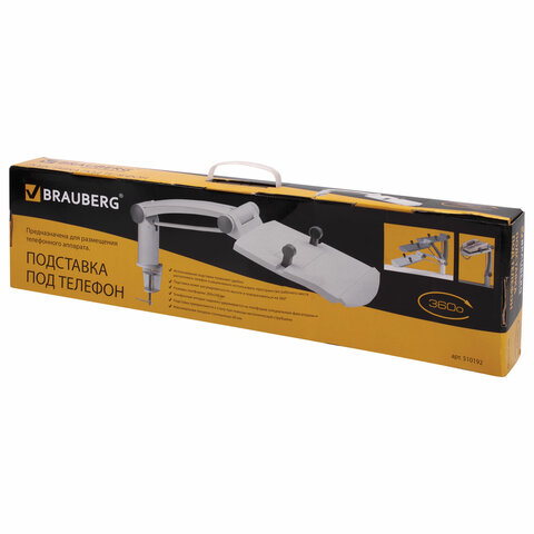 Удобная регулируемая подставка BRAUBERG позволяет расположить телефон на высоте до 41 см над столом и повернуть его под любым углом.