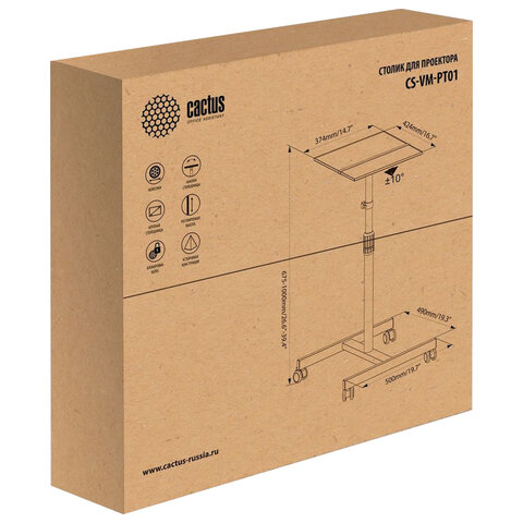 Стол для проектора CS-VM-PT01 обладает устойчивой конструкцией с возможностью регулировки высоты от 675 до 1'000 мм. Блокировка колесиков позволяет удобно разместить столик CACTUS в помещении и зафиксировать его положение, а функция наклона столешницы обеспечивает комфорт для более детальной настройки.