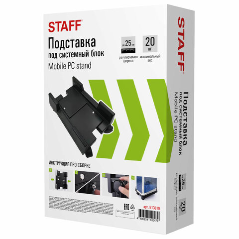 Передвижная подставка для системного блока STAFF используется для установки системных блоков шириной от 155 до 260 мм.