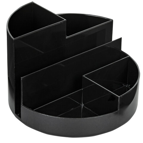 Изготовлена из высококачественного пластика. Имеет размеры 130х130х90 мм. Состоит из 6-ти отделений для канцелярских мелочей и пишущих принадлежностей. Поставляется без наполнения.