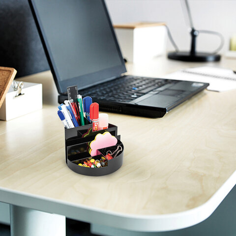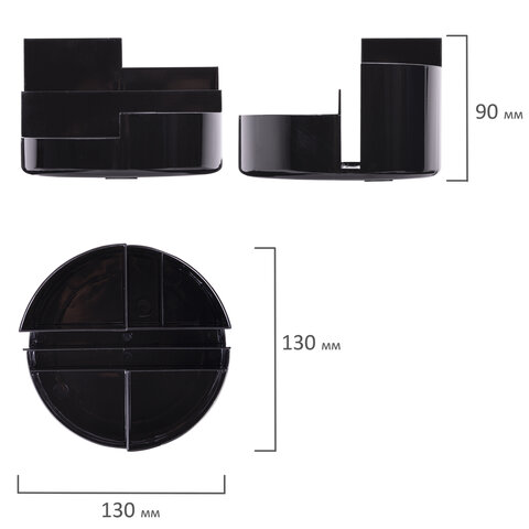Подставка-органайзер BRAUBERG ULTRA, 132х122х108 мм, 5 отделений, черная, 238256