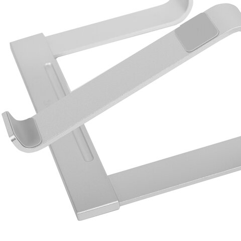 Жесткая конструкция из металла выдерживает нагрузку ноутбука. У подставки регулируется ширина – её можно настроить для различных диагоналей ноутбука. Резиновые вставки на ножках предотвращают скольжение по поверхности стола, добавляя подставке устойчивости.