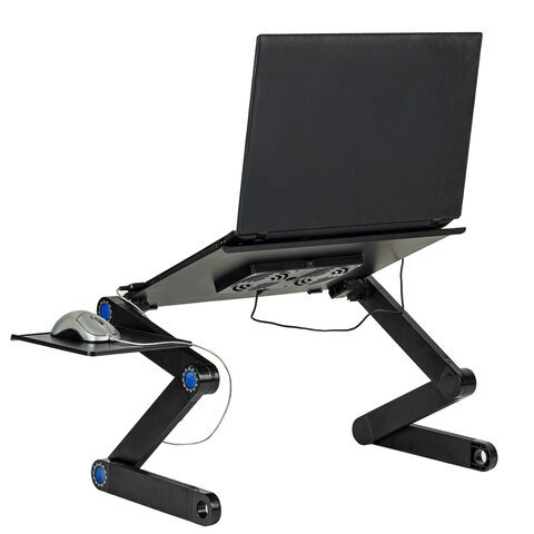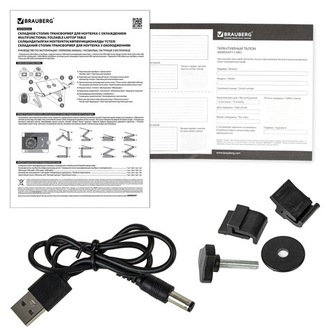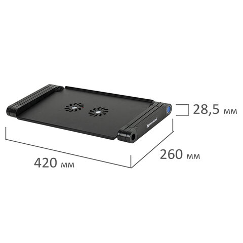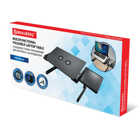 Крепкий и надежный складной столик-трансформер с 2 вентиляторами и возможностью регулировки угла наклона. Складной столик BRAUBERG предотвращает перегрев ноутбука во время продолжительной работы или игры. Питание от USB не требует подключения к сети.