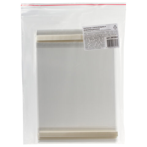 Карманы информационные самоклеящиеся PS-T, А4, горизонтальные, КОМПЛЕКТ 10 шт., ПЭТ, толщина 0,3 мм, 171883