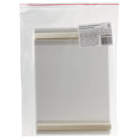 Карманы информационные самоклеящиеся PS-T, А4, горизонтальные, КОМПЛЕКТ 10 шт., ПЭТ, толщина 0,3 мм, 171883