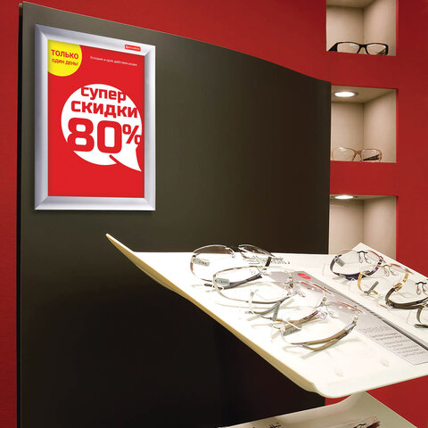 Настенная рамка BRAUBERG актуальна для рекламных носителей, объявлений и документов, требующих частой замены.