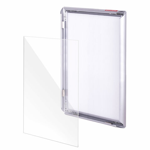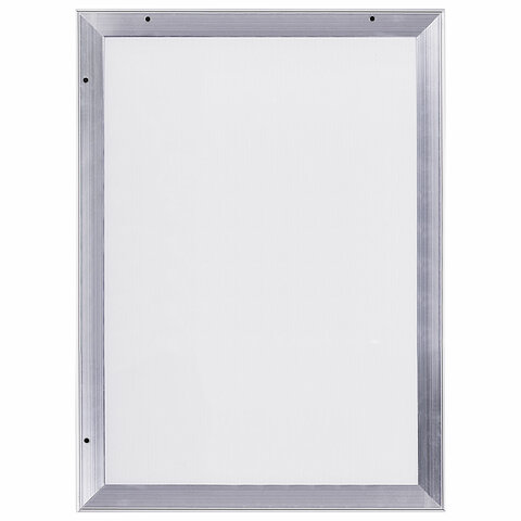 Профиль рамки изготовлен из анодированного алюминия. Изменяемое расположение: книжное или альбомное. Благодаря прозрачному антибликовому покрытию документы отчётливо видны посетителю, не мнутся и не загрязняются в течение всего эксплуатационного периода. Рамка крепится к стене через специальные отверстия при помощи дюбелей и саморезов. Элементы крепления входят в комплект. Максимальная высота вставляемого листа - 420 мм, максимальная ширина вставляемого листа - 297 мм. Цвет рамки - матовое серебро.