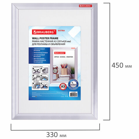 Рамка настенная с защелкивающимся профилем BRAUBERG "Extra" предназначена для размещения печатных материалов. Идеально подходит для использования в офисе, торговых залах, пунктах выдачи, медицинских и других учреждениях.