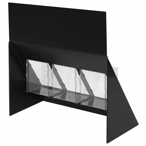Легкая и компактная конструкция, состоящая из 3 отделений, выполнена из черного полистирола толщиной 3мм. Отделения в виде стаканчиков выполнены из прозрачного ПЭТ толщиной 1мм. Подставки BRAUBERG позволяют разместить максимальное количество ручек и карандашей даже в небольших торговых пространствах. Стильный, лаконичный дизайн подставки привлечет внимание покупателей к товару.