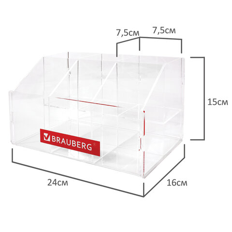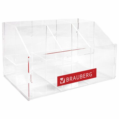 Подставка под письменные принадлежности BRAUBERG, 12 отделений, 15х47х16 см, оргстекло, 505924