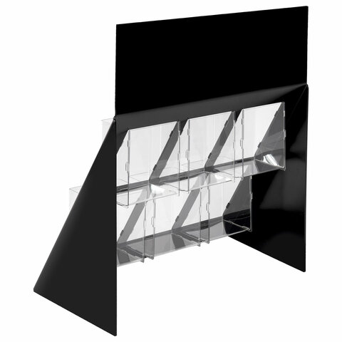 Стильная, легкая и компактная конструкция, состоящая из 6 отделений, выполнена из черного полистирола толщиной 3мм. Отделения в виде стаканчиков выполнены из прозрачного ПЭТ толщиной 1мм. Подставки BRAUBERG позволяют разместить максимальное количество ручек и карандашей даже в небольших торговых пространствах.