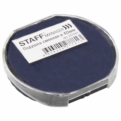 Сменная подушка STAFF (D=40 мм) предназначена для нанесения чернил на клише самонаборных печатей "Printer 8010", "Printer 8015" и "Printer 8020" с размером печати 40 мм.