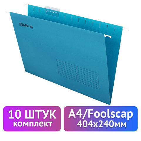 Подвесные папки A4/Foolscap (404х240 мм) до 80 л., КОМПЛЕКТ 10 шт., крафт-картон, STAFF, 270937