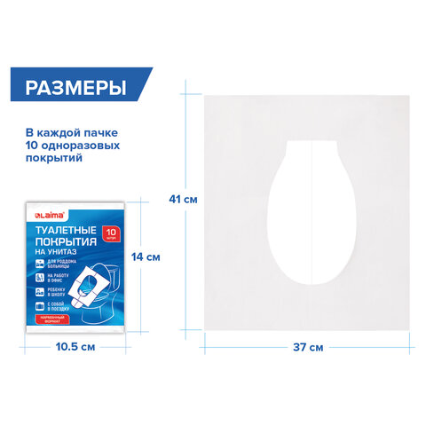 Одноразовые накладки на унитаз LAIMA в удобном карманном формате. В комплекте 10 одноразовых покрытий. Помогут в роддоме, в больнице, в дороге, на отдыхе и на работе. Изготовлены из 100% целлюлозы, гигиеничны, легко смываются в унитаз после использования.
