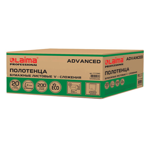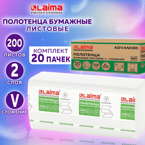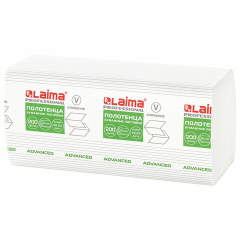 Полотенца бумажные (1 пачка 200 листов) LAIMA (H3) PREMIUM UNIT PACK, 2-сл,22х22, V-сложение, 115499, 326274