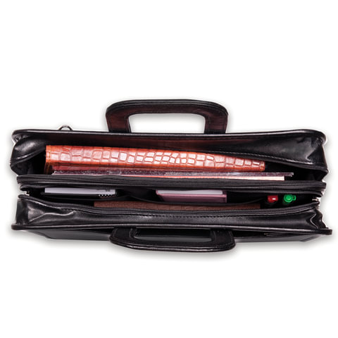 Портфель из натуральной кожи, 38х27х12 см, 2 отделения, замок с ключом, черный, 2-237