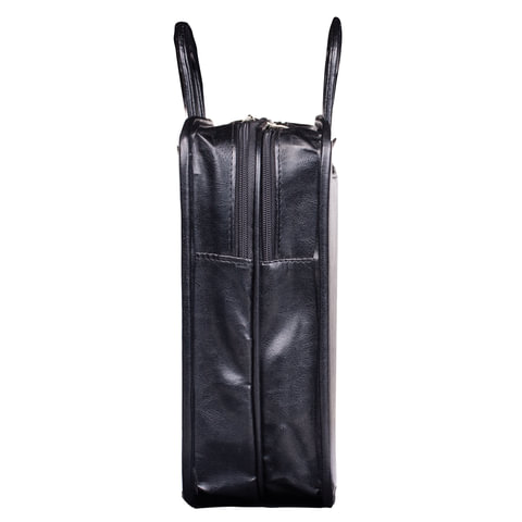 Портфель из натуральной кожи, 33х25х8 см, 2 отделения, 2 застежки с кнопкой, черный, 1-043