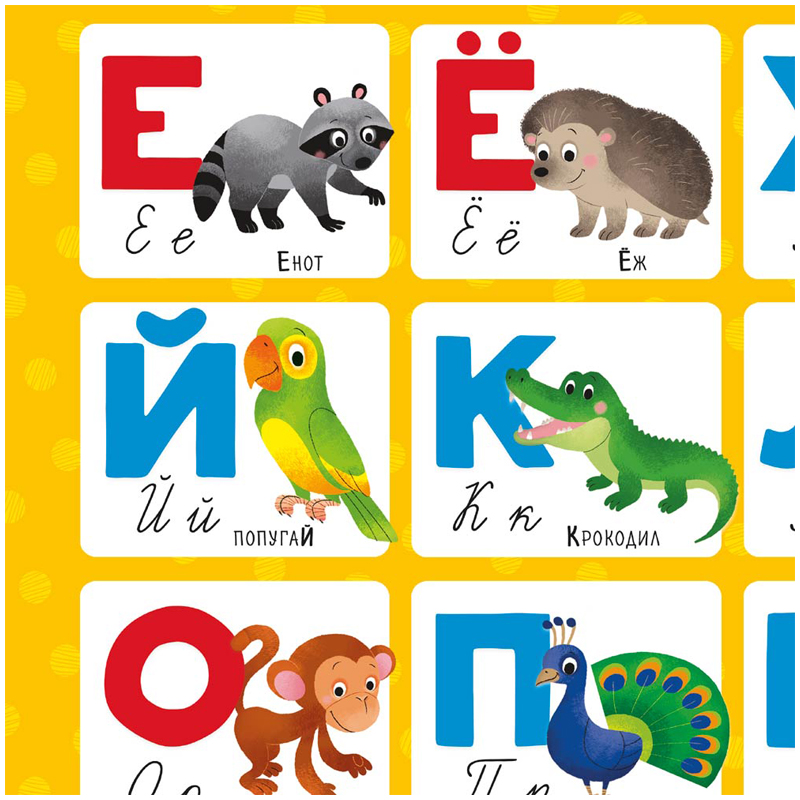 Яркий плакат с забавными и самыми разными животными для изучения букв русского алфавита обязательно понравится малышам.