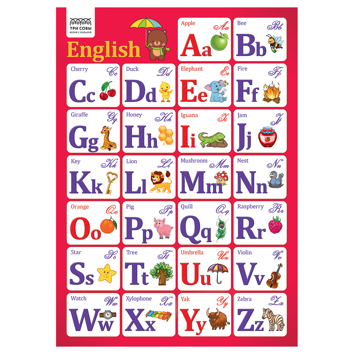 Плакат обучающий ТРИ СОВЫ "Английский алфавит", 440*600мм