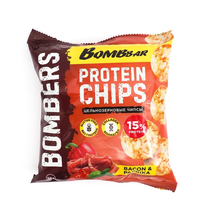 Чипсы "BOMBBAR" цельнозерновые протеиновые со вкусом "Бекон с паприкой" 50 г
