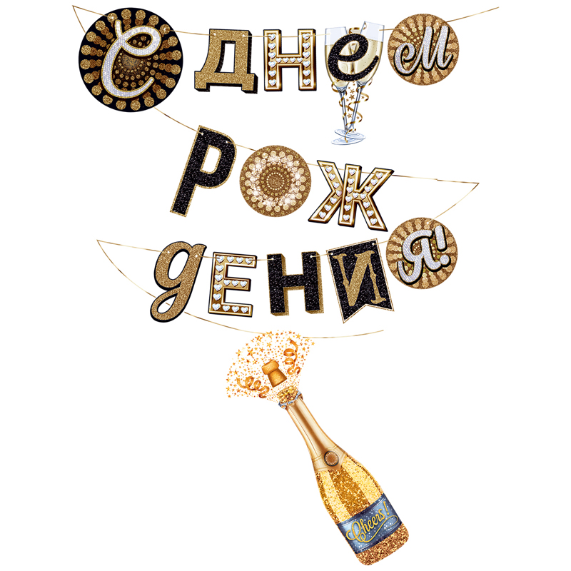 Эффектная гирлянда для запоминающегося поздравления! <br/>Отлично впишется в любой праздничный декор и будет особенно гармонично смотреться с воздушными шарами. <br/>• Отличное оформление для фотозоны<br/>• Универсальная цветовая гамма<br/>• Благодаря разным вариантам сборки гирлянда может принимать необычные формы.<br/><br/>Перед использованием гирлянду необходимо собрать с помощью ленты.
