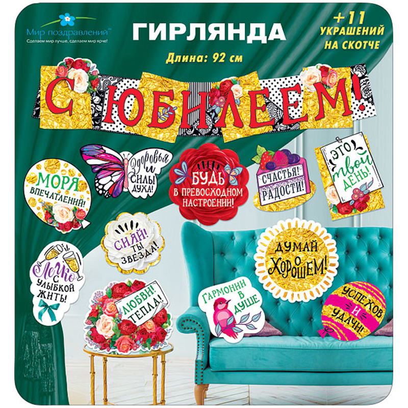 Гирлянда-буквы Мир поздравлений "С юбилеем!", 100см, с пикколо