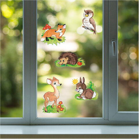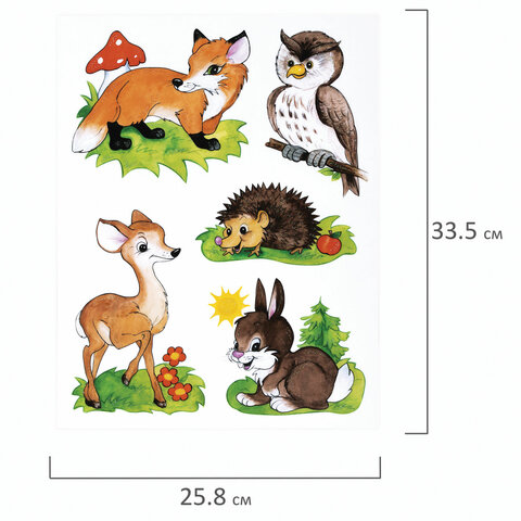 Изделие с изображением забавных зверят представляет собой наклейку на окно/стекло, изготовленную из поливинилхлорида (ПВХ). Наклейка размером 25,8х33,5 см декорирована разноцветным глиттером. Украшение предназначено для декорирования окон, зеркал, стекол и других ламинированных глянцевых поверхностей. Не оставляет клеевых следов и предназначено для многократного использования. Крепится к поверхности посредством статического эффекта. Украшение на белой картонной подложке упаковано в прозрачный полипропиленовый пакет на картонном подвесе.