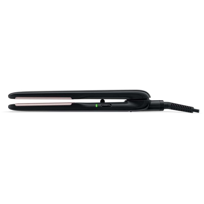 Удобные длинные пластины для быстрого выпрямления. Профессиональная температура укладки 210 °C для идеальных результатов. Гладкие и блестящие волосы. Рукоятка оснащена фиксатором для удобства складывания и хранения. Сетевой шнур 1,8 м. Быстрый нагрев, готовность к использованию за 60 секунд. Переключение напряжения. Шарнир предотвращает спутывание шнура. 2 года гарантии по всему миру
