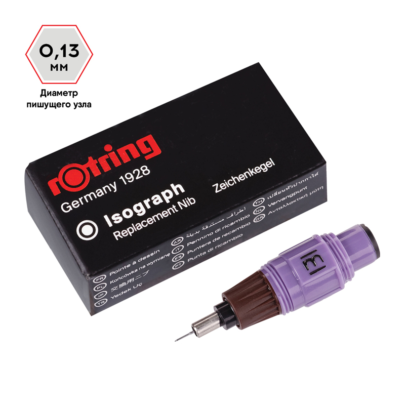Сменный пишущий элемент для изографа rotring. Диаметр пишущего узла - 0.13 мм